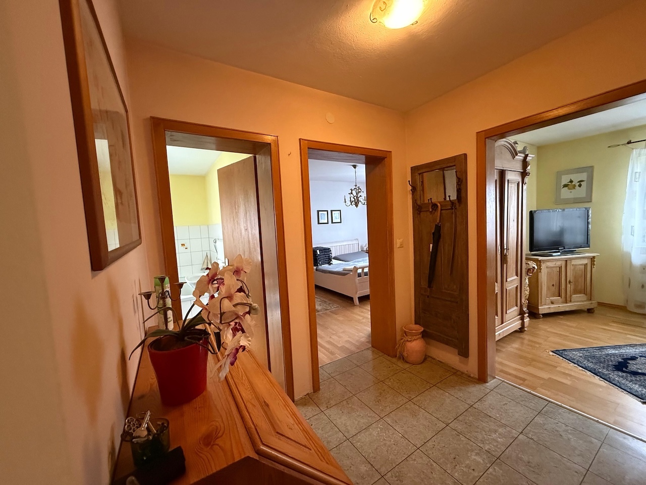 – Keller: Die Kellerräume bieten vielseitige Nutzungsmöglichkeiten und eignen sich hervorragend als Büro oder Hobbyraum. Bitte beachten Sie, dass das Badezimmer derzeit als Durchgangszimmer fungiert.